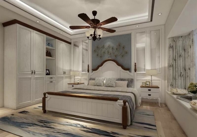 對一個特別喜歡公主的人來說,復古歐風一直是林小姐心中一個揮之不去的夢。在臥室的裝修上,林小姐也特別提出了這個需求。整體色調依舊是以白色為主,柜體選用深色原木條框作為搭配,營造出歐式復古風情。衣柜中部添加鏤空設計,更具設計感,還方便放置包包和首飾。